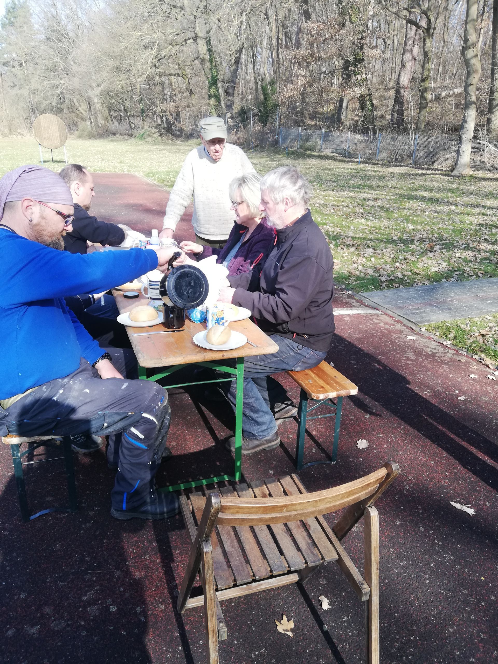 Beim anschließenden gemeinsamen Frühstück stärkte sich die fleißige Crew und ließ dann den ersten Arbeitseinsatz langsam ausklingen.
